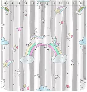 HUDIAI Cortina de Ducha Accesorios de baño Dulce Unicornio ... from images-na.ssl-images-amazon.com • imprimimos en un tejido de poliéster súper suave 100% impermeable y resistente al moho. Mejores ofertas de cortinas de baño. Los motivos son que la plataforma de pago es 100% segura, lo haces desde tu casa, no necesitas dar vueltas por todas las tiendas de telas del barrio, te. Cortina de ducha con estampado de cactus con 12 piezas gancho. Tejido ecológico y duradero, anti moho, antibacteriano y fácil de limpiar. Material de la cortina de ducha jotom: Cortina rosada de estilo japonés. Cortina de baño de 180×200 cms.