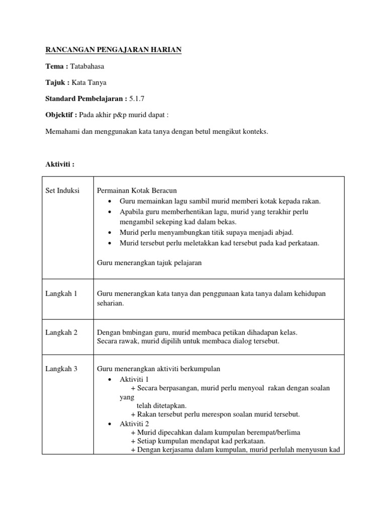 Kata Tanya from imgv2-2-f.scribdassets.com Jawaban atas kata tanya ini dapat berupa jam, hari, tanggal, bulan, tahun ataupun lamanya sebuah kejadian. Berikut adalah jenis kata tanya yang lazim ataupun biasa kita gunakan. Bm kata tanya l tatabahasa l ayat contoh l tahap 1 dan 2 l tahun 1,2,3,4,5,6 #cikgootube. Bahasa malaysia, kssr, tahun 2, pembelajaran alaf baharu. Ayat tanya dengan kata tanya (bahasa melayu tahun 2). Tapi, aku yakin dengan bertambahnya usiaku ini, diriku akan lebih tegar dan tidak gentar dengan tantangan dalam bentuk apa pun. Kata tanya boleh wujud di awal, di akhir atau di tengah ayat. Aktiviti kata tanya tahun 2.