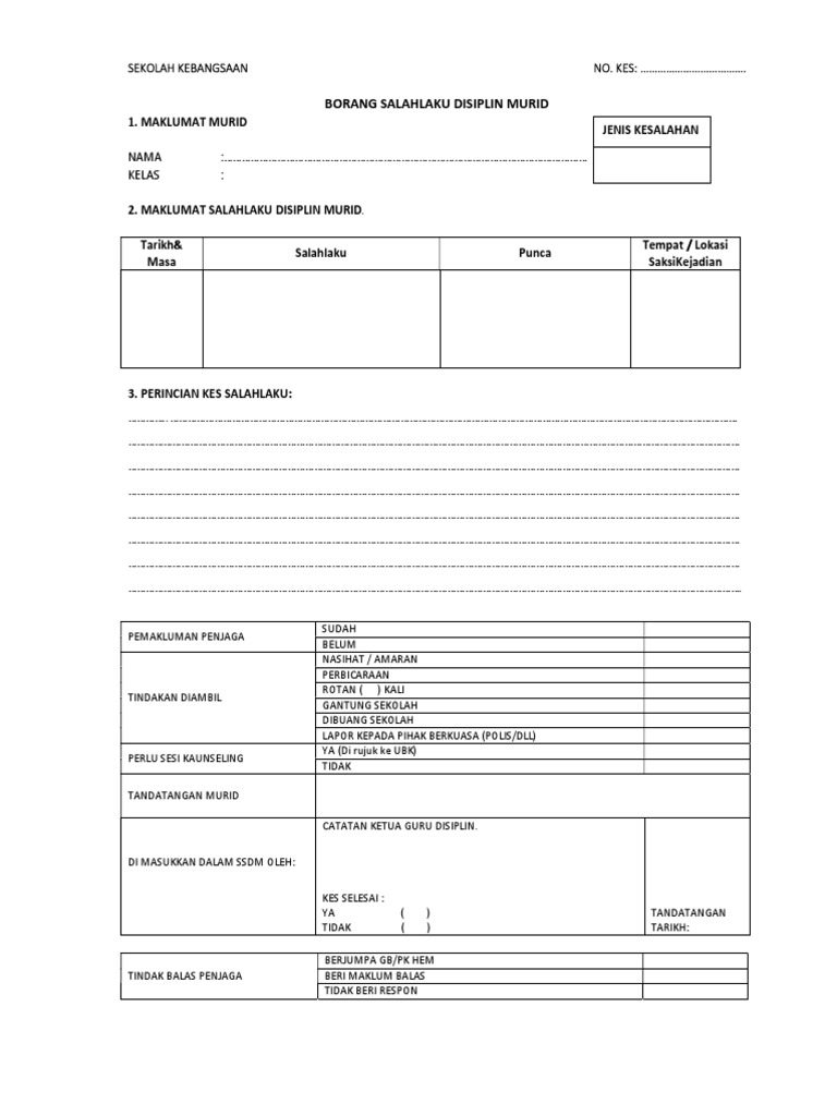 L = p=.jum=data saringan terkini: Untuk lebih details, antara butiran yang ada ialah seperti nama penuh, nombor my kid, warganegara, kaum, agama, alamat, jenis. G) murid tidak dibenarkan membeli makanan / minuman di luar waktu rehat kecuali dengan kebenaran khas. Sistem pelaporan isu disiplin dan pendidikan. Membina borang perekodan suhu murid, guru, pelawat menggunakan google form semasa tempoh pkp. Please fill this form, we will try to respond as soon as possible. Laporan disiplin dan pemantauan pihak pengurusan. Mengawasi disiplin murid di luar waktu belajar seperti pada waktu rehat dan waktu sebelum 12. Guru boleh muat turun borang aplikasi data murid apdm dalam format doc word (boleh edit) atau pdf. Sitawati, ms tanda tangan ketua auditor : 2 pengurusan disiplin murid dan. Menyediakan dokumen murid yang berpindah: Laporan program pembangunan sahsiah diri murid (ppsdm) 2013.