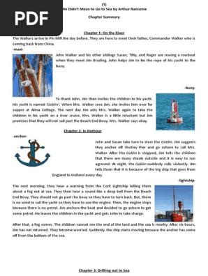 There, they befriend jim brading, owner of the yacht goblin, who invites them on… Oct 02, 2017 · novel we didn't mean to go to sea (form 3) : Based on one of the novels above, write about one of the themes in the story. Provide evidence from the text to support your response. Oct 09, 2017 · novel we didn't mean to go to sea :